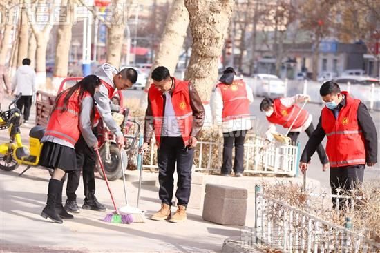 2023年3月5日,志愿者在清扫街道,美化环境。