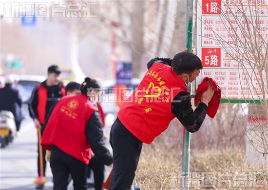 2023年3月5日,志愿者在清扫街道,美化环境。