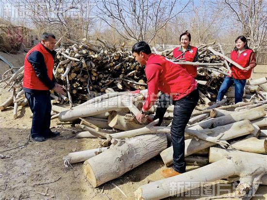 2023年3月2日,志愿者在洛浦县纳瓦乡巴什尕帕村农户家里帮助村民整理庭院。