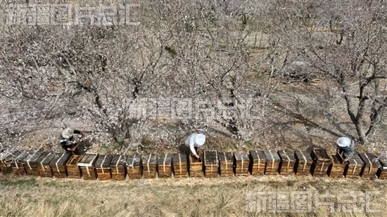 2023年3月30日,蜂农在轮台县阳霞镇库都克村一杏园管护蜜蜂。