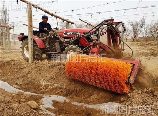 2023年3月7日,吐鲁番市高昌区葡萄镇布拉克村农民利用开墩机葡萄开墩。