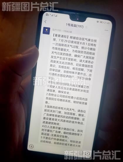2021年7月30日,乌鲁木齐市各区县社区通过微信群为辖区居民推送应对强降雨天气须知。