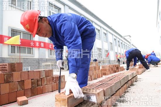 2023年3月31日,参赛选手进行砌筑工比赛。