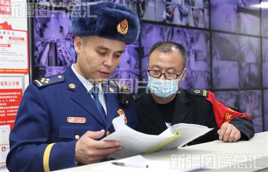 2023年2月28日,乌鲁木齐市消防救援支队沙依巴克区大队防火监督员在新奇广场进行消防安全检查。