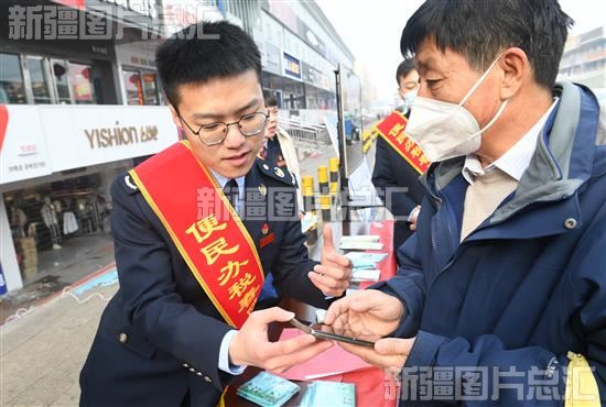 2023年2月24日,沙湾市税务局工作人员为市民讲解惠民政策。