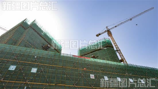 关键字:新疆 乌鲁木齐市 乌鲁木齐经济技术开发区 头屯河区 项目建设 新疆青少年出版社 仓储物流中心项目 工人 施工 浇筑混凝土 捆扎钢筋 搬运 建筑物资