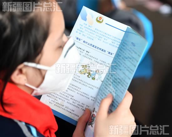 2023年4月4日,学生在阅读《平安出行 拒乘黑车》宣传册。