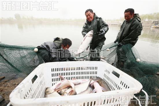 2023年4月6日,新疆生产建设兵团第三师四十一团草湖镇九连职工养殖的鱼喜获丰收。
