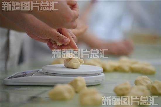 2023年2月23日,技能培训学校老师在社区食堂,给乌鲁木齐高新区(新市区)友谊路街道永昌社区居民示范西式面点的称重。