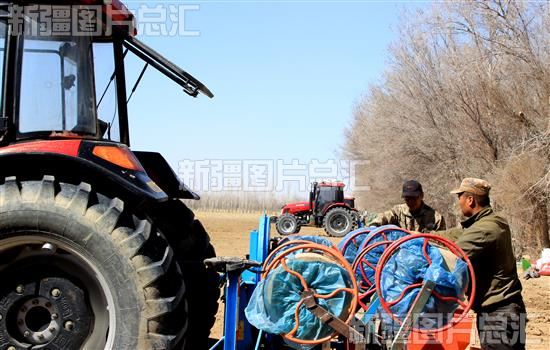 近日,裕民县大地春暖,当地农民忙着春耕春播劳作,田间地头一派忙碌景象。