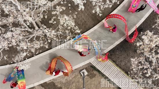 当日,春暖花开,库尔勒市彩带龙健身爱好者来到孔雀河畔的香梨园,进行彩带舞表演活动,享受春日健身乐趣。