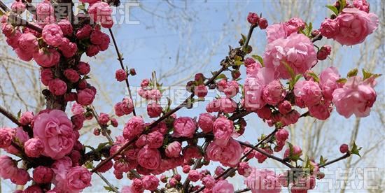 2023年4月10日,察布查尔锡伯自治县街头、公园和小区内的榆叶梅竞相绽放,争奇斗艳,令人陶醉。
