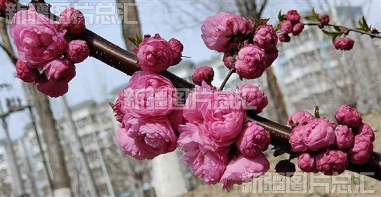 2023年4月10日,察布查尔锡伯自治县街头、公园和小区内的榆叶梅竞相绽放,争奇斗艳,令人陶醉。
