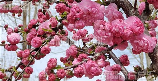 2023年4月10日,察布查尔锡伯自治县街头、公园和小区内的榆叶梅竞相绽放,争奇斗艳,令人陶醉。