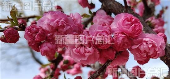 2023年4月10日,察布查尔锡伯自治县街头、公园和小区内的榆叶梅竞相绽放,争奇斗艳,令人陶醉。