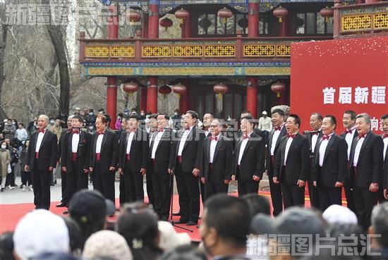 2023年4月12日,乌鲁木齐市文化馆西域男声合唱团演员表演合唱。