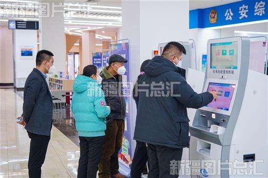 2023年1月28日,在昌吉市市民服务中心,群众在社保自助查询终端机上查询社保信息。