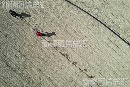 2023年4月12日,察布查尔锡伯自治县加尕斯台镇下加尕斯台村一处正在铺设滴灌带的高标准农田(无人机拍摄)。