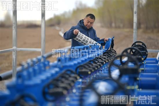 2023年4月12日,工作人员在察布查尔锡伯自治县加尕斯台镇下加尕斯台村检查高标准农田配套水利设施。