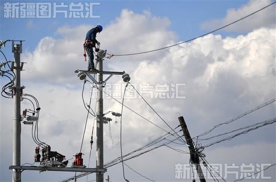 2023年4月12日,施工人员在察布查尔锡伯自治县海努克镇切吉村的一处高标准农田配套电力设施进行安装作业。