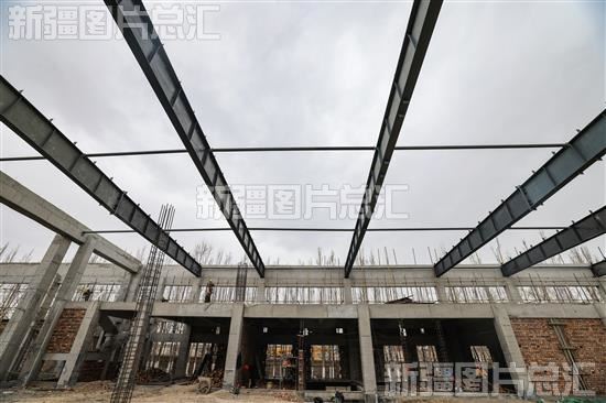 2023年4月11日,工人在位于博乐市的新疆雪山牛谷食品有限责任公司预制菜及肉制品深加工及配套附属项目建设现场作业。