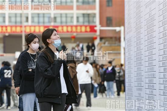 2023年4月13日,参加乌鲁木齐职业大学专场招聘会的学生查看企业招聘信息。