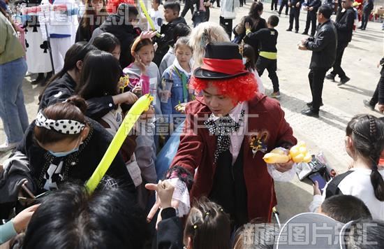 2023年4月15日,演员和游客在伊吾县苇子峡乡杏花节上互动。