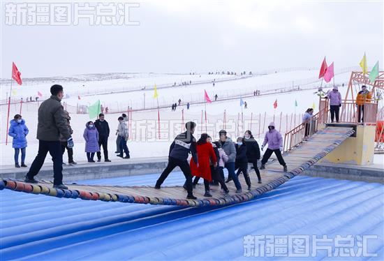 2023年1月24日,游客在洛浦县丝路滑雪场体验网红摇摆乔项目。