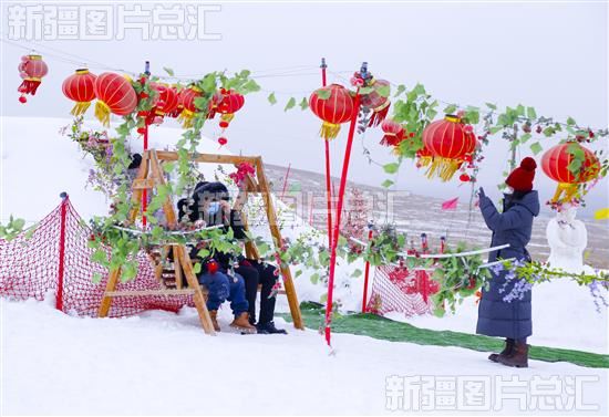 2023年1月24日,游客在洛浦县丝路滑雪场手机随拍留念。