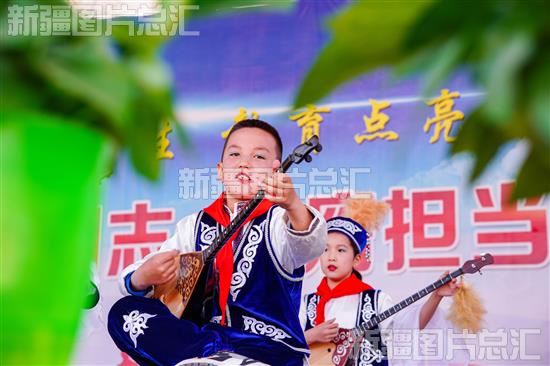 2023年4月14日,学生在弹奏冬不拉《春风》。