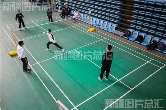 2023年1月25日,在新疆昌吉回族自治州呼图壁县文化体育中心内,众多居民在此打球健身。