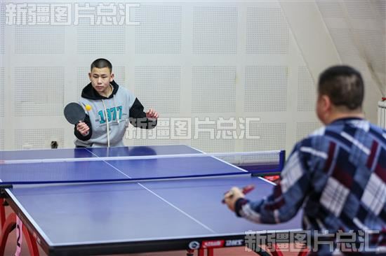 2023年1月25日,在新疆昌吉回族自治州呼图壁县文化体育中心乒乓馆内,众多居民在此打球健身。