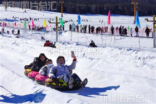 2023年1月26日,游客在哈密松树塘滑雪场滑雪圈。