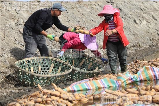2023年4月14日,工人在博湖县乌兰再格森乡席子木呼尔村池藕种植基地搬运藕种。