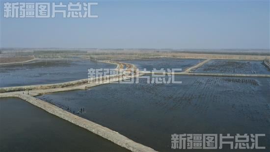 2023年4月14日,俯瞰博湖县乌兰再格森乡席子木呼尔村“池藕”种植基地(无人机拍摄)。