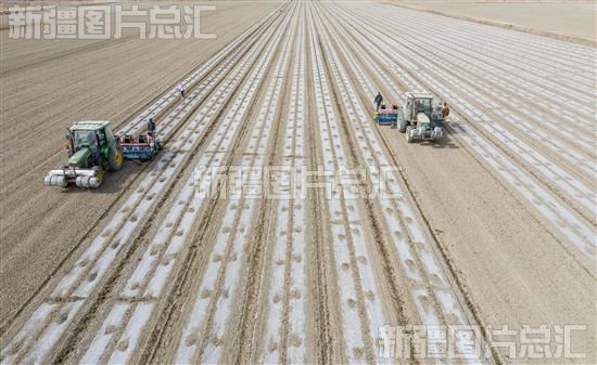 连日来,库车市塔里木镇17.9万亩棉花陆续开播,其中机采棉面积达到16.5万亩。