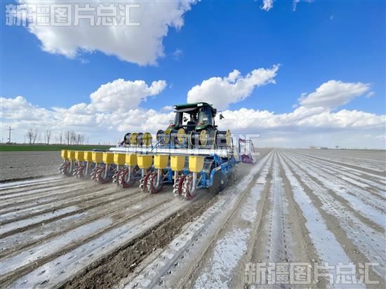 随着天气回暖,沙湾市各乡镇的棉田里大型农机往来穿梭,农业生产尽显现代化、科技范。