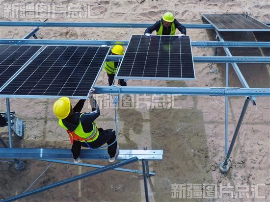 关键字:国家电网 和田地区 墨玉县 玉西开发区 项目建设 能源 新能源 清洁能源 光伏发电 施工 工人 并网发电 新疆电力天山雪莲(和田墨玉)共产党员服务队 电气设备 构架组装 安装 光伏组件