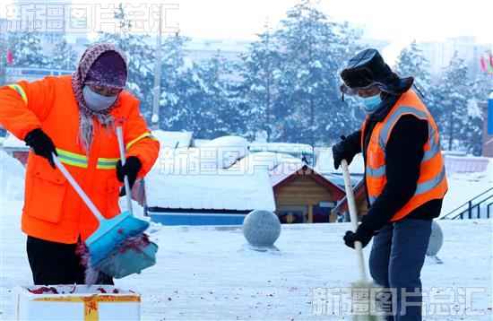 2023年1月22日,阿勒泰市环卫工人正在进行保洁作业。