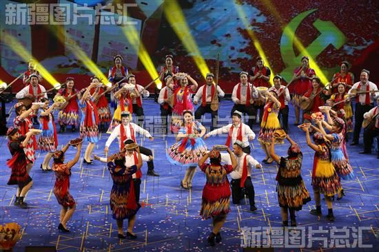 2023年1月20日晚,洛浦县各乡镇民间艺人该县影剧院表演集体舞《礼赞党的二十大》。