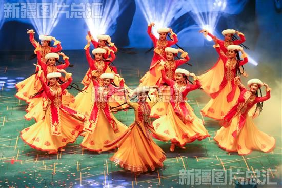 2023年1月20日晚,洛浦县洛浦县民间艺人演出团演员在该县影剧院表演集体舞《伟大祖国》。