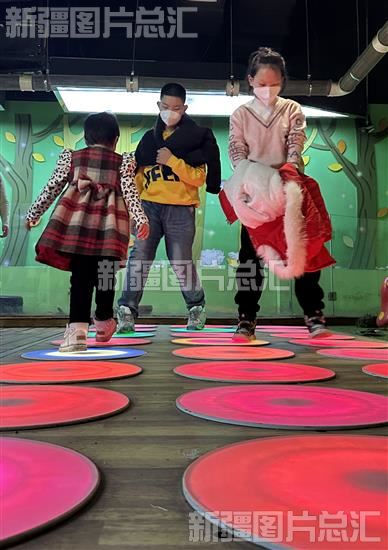 2023年1月21日,孩子们在体验跳跳钢琴。