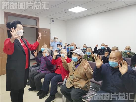 2023年1月19日,沙湾市中心敬老院工作人员在给老人教手指操。