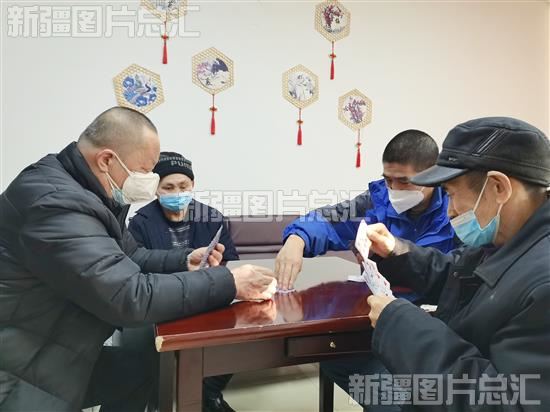 2023年1月19日,沙湾市中心敬老院的老人在玩扑克牌。