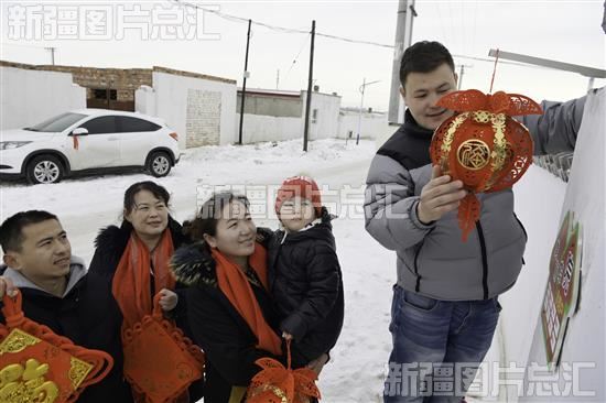2023年1月20日,和布克赛尔县财政局驻莫特格乡敖包特村“访惠聚”工作队队员、村干部帮助村民挂灯笼,共迎新春佳节。
