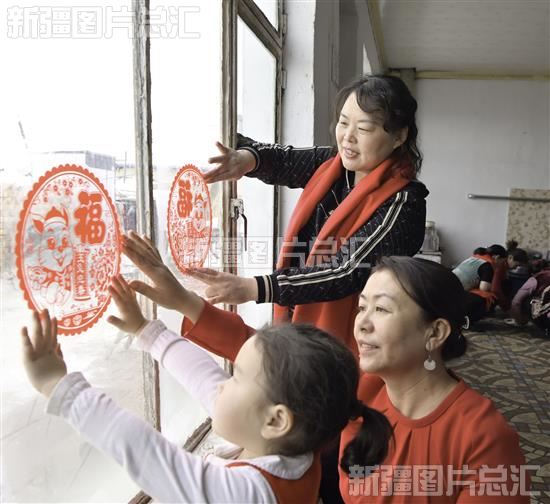2023年1月20日,和布克赛尔县财政局驻莫特格乡敖包特村“访惠聚”工作队队员、村干部帮助村民贴窗花,共迎新春佳节。