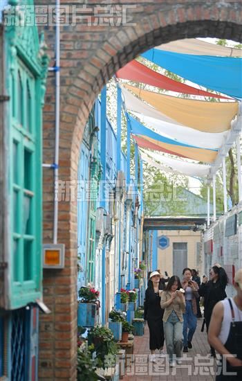 2023年4月15日,游客在伊宁市六星街景区参观。
