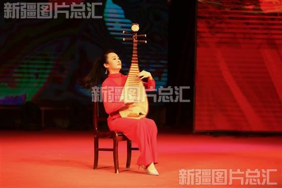 2023年1月12日,北京演艺集团演员在洛浦县影剧院为当地各族群众表演《琵琶独奏》。
