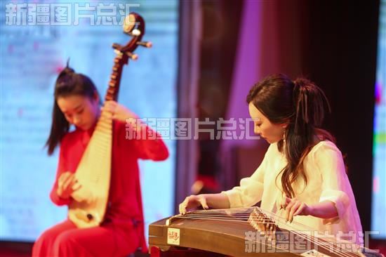 2023年1月12日,北京演艺集团演员在洛浦县影剧院为当地各族群众表演琵琶吉筝合奏《春江花月夜》。