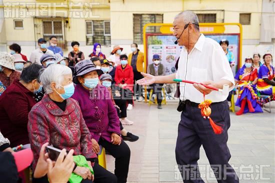 近日,哈密市伊州区新时代文明中心的“银发”文化志愿者队走进社区为居民献上了一台精彩的演出,受到居民们的欢迎,该志愿者队伍平均年龄近70岁,用文艺演出形式宣传党的好政策带来的新变化。